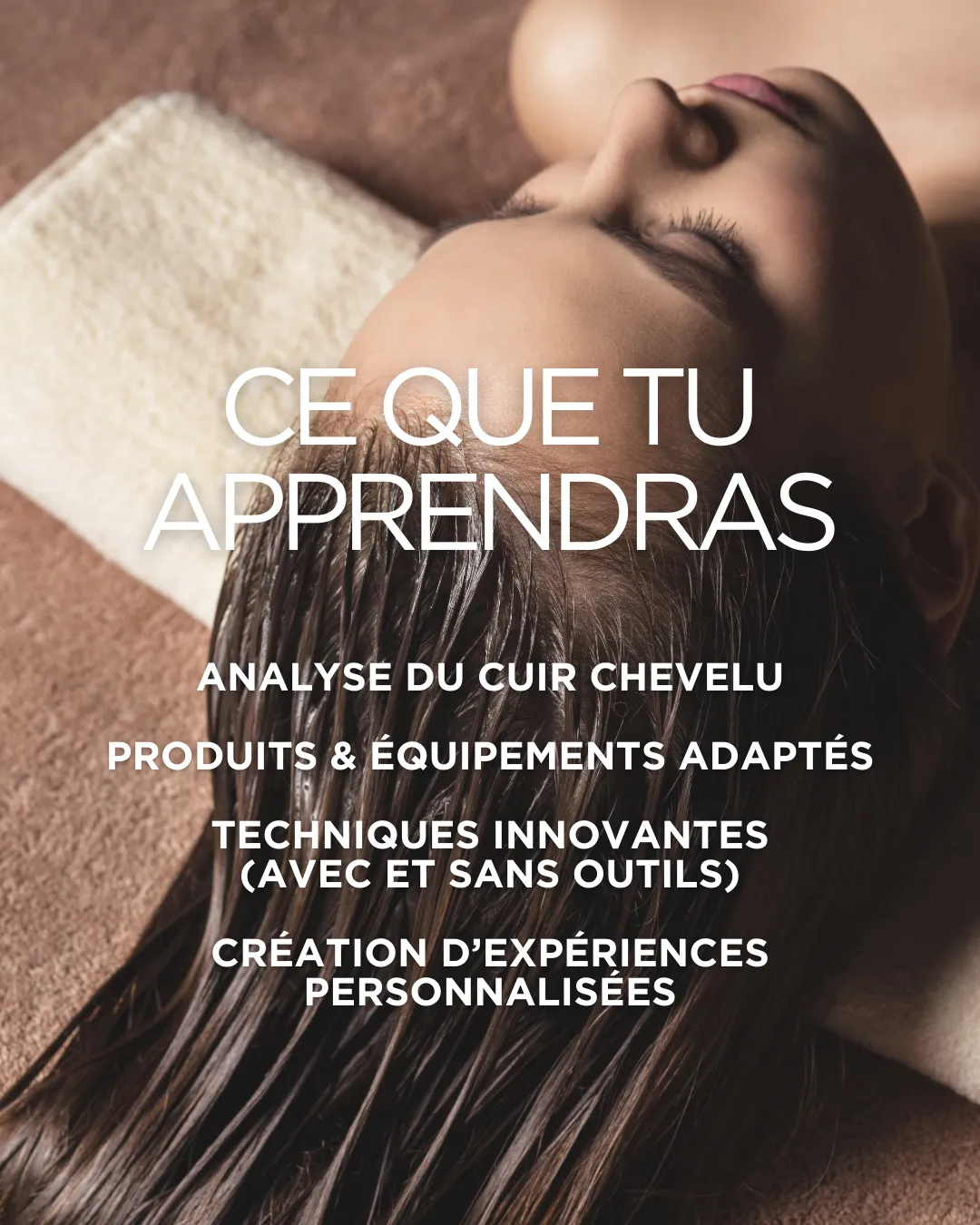 Offre à tes clientes une expérience sensorielle unique: analyse du cuir chevelu, massage crânien, produits adaptés et rituels de bien-être.